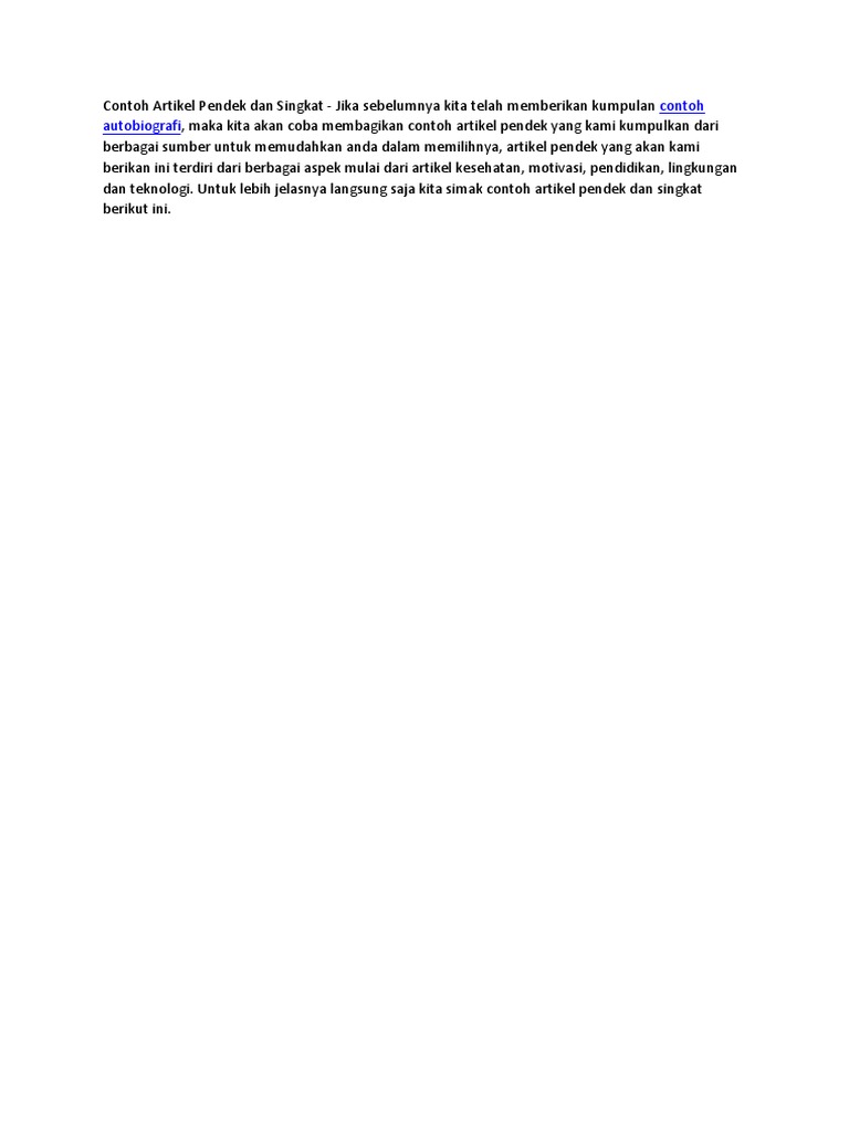9+ contoh artikel singkat bahasa indonesia ilmiah. Ada beberapa media untuk publikasi artikel, bisa di majalah, koran, sosial media di internet, dan lain sebagainya. Semoga artikel yang saya berikan dapat memberikan kamu wawasan baru dan informasi yang lebih banyak tentang kultum, serta contoh kultum yang diberikn dapat dijadikan sebagai referensi untuk membuat kultum sesuai dengn. Pidato bertujuan menyampaikan suatu pendapat atau pandangan terhadap hal tertentu. Contoh pidato singkat bahasa indonesia, pendidikan berkarakter, islami, lingkungan sekolah, pergaulan bebas, bahasa inggris, perpisahan, dll.